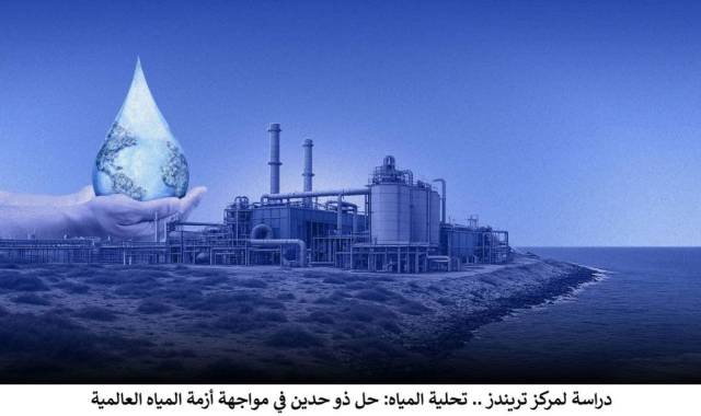 A research study issued by the Trends Center for Research and Consulting showed that water desalination is a vital tool to face the crisis of the watership scarcity around the world, but at the same time imposes serious environmental and economic challenges that must be addressed to ensure the sustainability of this technology in the long term. According to the study, prepared by the Center’s Economic Studies Department under the title “The Future of Water Desalination: Between Funding and Climate Challenges”, the world faces an expected deficit in water by 40% by 2030, and although 70% of the surface of the earth is covered with water, only 0.5% of them are available and drinking. The study warned that 99% of desalination plants depend on fossil fuels, what