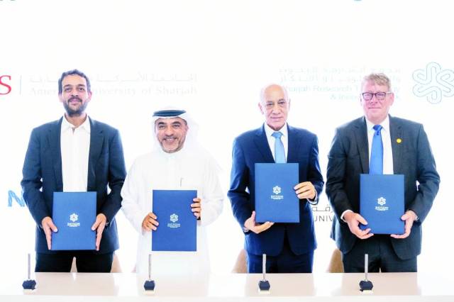 The Sharjah Complex for Research, Technology and Innovation signed a three -year strategic research agreement (MRA) with the National Dye Factory Company “National Sebaeen”, the American University of Sharjah (AUS), and the University of Sharjah (UOS), with the aim of enhancing applied research projects directed towards the advanced industry. This quadruple partnership is the first of its kind, as it sets an organized framework for joint applied research, and seeks to accelerate the conversion of knowledge and academic experience into marketable industrial products. The agreement was signed by Hussein Al -Mahmoudi, Executive Director of the Sharjah Research, Technology and Innovation Complex, Samer Al -Sayegh, Director General of Al -Asbah National Company,