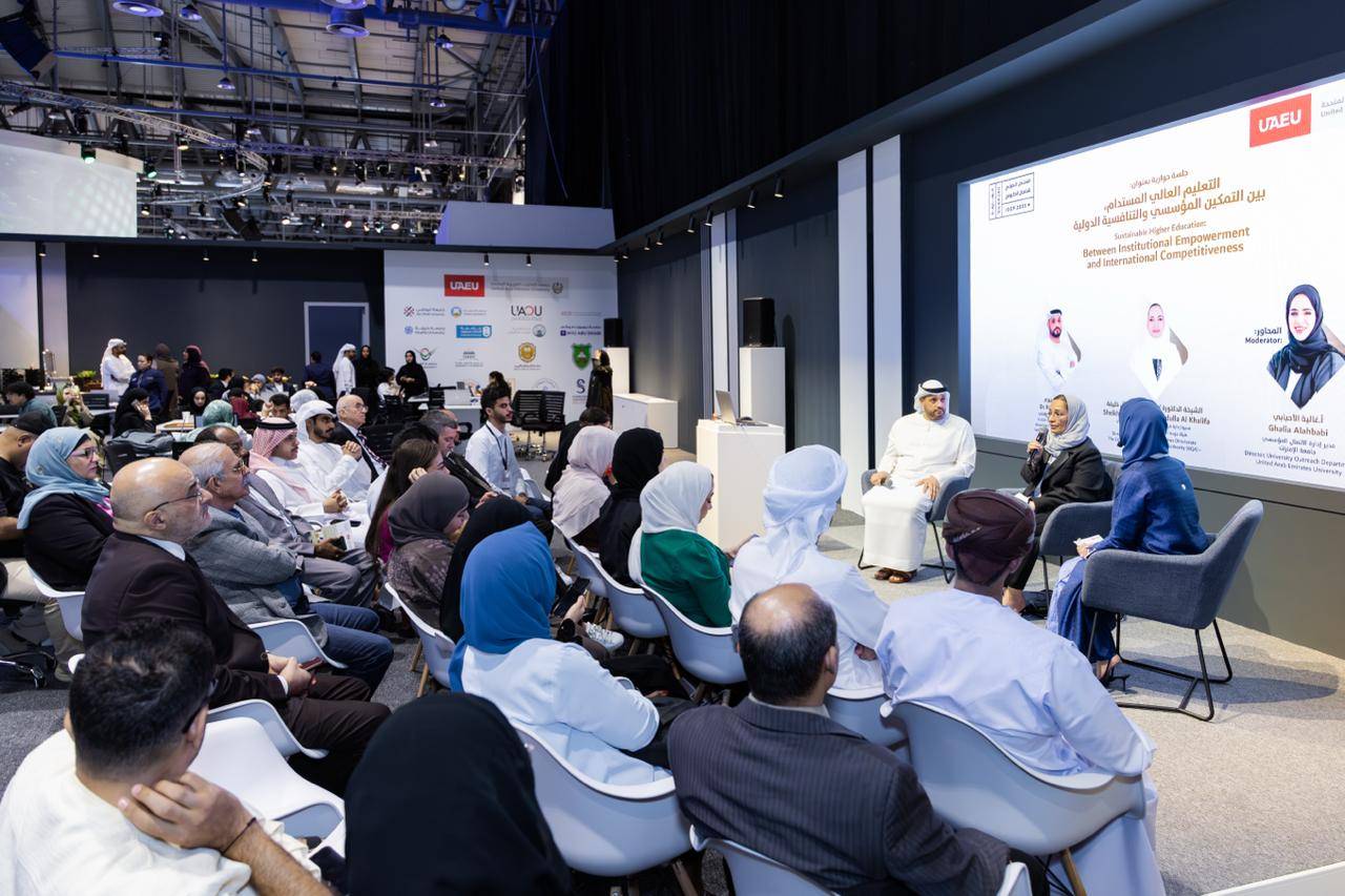 The United Arab Emirates University organized the session “Sustainable Higher Education … between institutional empowerment and international competitiveness”, as part of its participation in the International Forum for Governmental Communication 2025, in the presence of a group of experts in the fields of higher education and vocational training from the Education and Training Authority in the Kingdom of Bahrain. The session discussed pivotal issues related to the future of Arab universities and their role in supporting the paths of sustainable development, in which Sheikha, Dr. Lubna Bint Ali Al Khalifa, Director of the Department of Reviewing the Performance of Higher Education Institutions in the Education and Training Authority in Bahrain, and Dr. Rami Bayram, participating deputy for scientific research at the Emirates University, and the session, attended the Ghaly Al -Ahbabi,