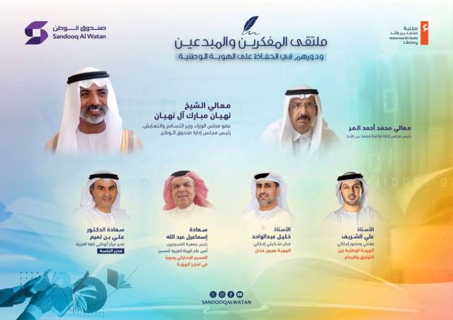 Sheikh Nahyan bin Mubarak Al Nahyan, Minister of Tolerance and Coexistence, Chairman of the Board of Directors of Al -Watan Fund tomorrow, Tuesday, will inaugurate the “Forum of thinkers and creators and their role in supporting the national identity” organized by the “Al -Watan Fund” in cooperation with the “Mohammed bin Rashid Al Maktoum Library Foundation”, and attended by a large elite of thinkers, writers, intellectuals, plastic artists, performances, craftsmen, and creators And the designers and producers of the Emirati creative content, to discuss ways to contribute and participate in building a firm national awareness that keeps pace with contemporary challenges and preserves the values and heritage of the state, because the role of these groups is not limited to artistic creativity or intellectual production, but extends to the formation of conscience