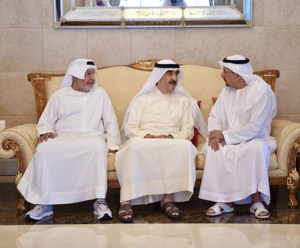 DUBAI- WAM, His Highness Sheikh Saud bin Rashid Al Mualla, Member of the Supreme Council and Ruler of Umm Al Quwain, on Sunday morning, offered condolences on the death of the late Hussein bin Abdul Rahman Khanasah. During his visit, His Highness the Ruler of Al -Quwain expressed his sincere condolences and sincere condolences to the sins and families of the deceased, praying to God Almighty, to shroud him with the mercy of his mercy, to dwell in his vast gardens, and to inspire his family and his patience and solace. His Highness was accompanied during the offer of condolences, Sheikh Majid bin Saud bin Rashid Al Mualla, Head of the Department of Tourism and Antiquities, and Sheikh Abdullah bin Saud bin Rashid Al Mualla, Head of the Finance Department.